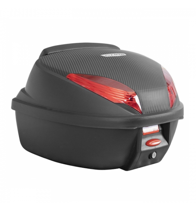 - Черный верхний кофр емкостью 35 л с крышкой из карбона