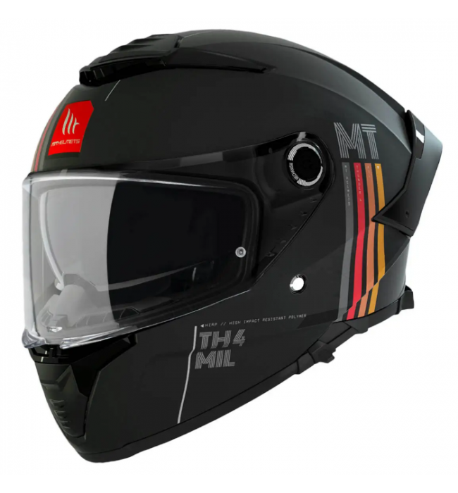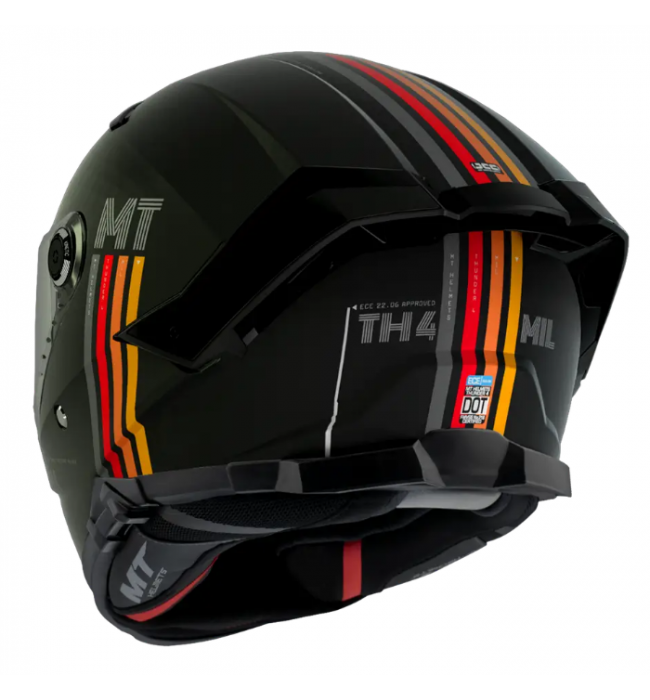 MT Helmets Thunder 4 - это новый интегральный мотоциклетный шлем, модель 2022 года с современным сертификатом безопасности ECE 22.06, учитывающим дополнительные тесты безопасности на касательные удары, чего не было в ECE 22.05 и еще 16 дополнительных тестов. Теперь тестируются все размеры оболочки шлема, а также шлем с дополнительными аксессуарами, такими как гарнитура или спойлер. Вы получаете самый современный шлем, отвечающий самым жестким условиям безопасности на планете!